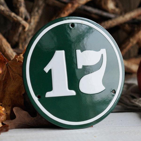 Inspirados por cabañas de madera y casas rurales, hemos diseñado nuestra colección Arrowhead pensando en la naturaleza. Letras blancas sencillas sobre un fondo verde bosque oscuro hacen que los números de casas, placas de direcciones y de nombres Arrowhead sean el complemento perfecto para construcciones situadas en entornos naturales. Disponible en una gran gama de tamaños, la colección Arrowhead es especialmente adecuada al aire libre, en un patio o como señalización en un jardín.