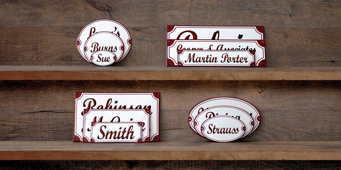 La tipografía decorativa informal es más personal y atractiva, haciendo que sea una opción natural para placas identificativas o de puertas en porcelana esmaltada. Montada en paneles de madera o en el revestimiento de un porche cubierto, una placa Lighthouse puede ayudar a convertir cualquier lugar en algo extraordinario.