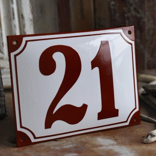 Obtenemos el distintivo color rojo Falu, utilizado para las letras y el borde, de un pigmento del cobre, siendo una tonalidad que destaca sobre fondos neutros. Cuando se coloca sobre maderas sin tratar, baldosas sin pintar y superficies blancas lisas nuestros números de casa Lighthouse y placas de direcciones llaman la atención, añadiendo un realce refinado.